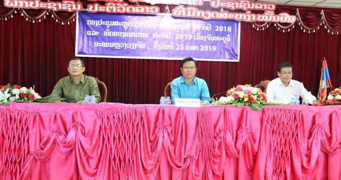 ໃນຕອນເຊົ້າຂອງວັນທີ 25 ເມສາ 2019 ຢູ່ທີ່ສະໂມສອນຫ້ອງວ່າການປົກຄອງເມືອງຈັນທະບູລີຫ້ອງການຍຸຕິທໍາເມືອງຈັນທະບູລີ ໄດ້ເປີດກອງປະຊຸມສະຫຼຸບວຽກງານຍຸຕິທໍາຮາກຖານ ປະຈໍາປີ 2018 ແລະ ທິດທາງແຜນການ ປະຈໍາປີ 2019ຂຶ້ນ ໂດຍການເປັນປະທານຮ່ວມຂອງ ທ່ານ ໄຂຄໍາພິທູນ ຈັນທະກຸນ ຮອງເຈົ້າເມືອງໆຈັນທະບູລີ, ທ່ານ ບົວເກດ ພົມມະຈັນ ຮອງຫົວໜ້າພະແນກຍຸຕິທໍາ ນະຄອນຫຼວງວຽງຈັນ ແລະ ທ່ານ ເພັດສະໝອນ ສົງຄໍາຈັນ ຫົວໜ້າຫ້ອງການຍຸຕິທໍາເມືອງຈັນທະບູລີ, ມີຮອງຫົວໜ້າຫ້ອງການຍຸຕິທໍາເມຶອງ, ວິຊາການ, ນັກສືກສາລົງຝຶກງານ ແລະ ແຂກທີ່ຖືກເຊີນເຂົ້າຮ່ວມທັງໝົດ ຈໍານວນ 54 ທ່ານ, ຍິງ 10 ທ່ານ.