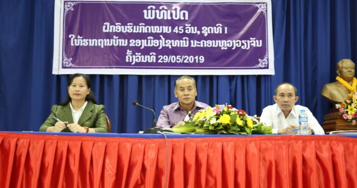 ໃນພິທີ ທ່ານ ນວນລະແສງ ເນດທອງສະຫວັນ ຄະນະພັກເມືອງ, ຫົວໜ້າຫ້ອງການໂຄສະນາເມືອງ ໄຊທານີ ກໍໄດ້ຂຶ້ນຜ່ານຂໍ້ຕົກລົງ ສະບັບເລກທີ 654/ຈມ.ຊທນ, ລົງວັນທີ 24 ເມສາ 2019 ວ່າດ້ວຍ ການອະນຸມັດເປີດຝຶກອົບຮົມກົດໝາຍໄລຍະສັ້ນ 45 ວັນ ຊຸດທີ 1 ຂອງປີ 2019, ຜ່ານຂໍ້ຕົກລົງ ສະບັບເລກທີ 653/ ຈມ.ຊທນ, ລົງວັນທີ 24 ເມສາ 2019 ວ່າດ້ວຍການແຕ່ງຕັ້ງຄະນະຮັບຜິດຊອບການຝຶກອົບຮົມກົດໝາຍໄລຍະສັ້ນ 45 ວັນ ແລະ ຂໍ້ຕົກລົງວ່າດ້ວຍ ການອະນຸມັດໃຫ້ບຸກຄະລາກອນເຂົ້າຝຶກອົບຮົມກົດໝາຍໄລຍະສັ້ນ 45 ວັນ ປີ 2019 ສະບັບເລກທີ 779/ຈມ.ຊທນ, ລົງວັນທີ 22 ພຶດສະພາ 2019.