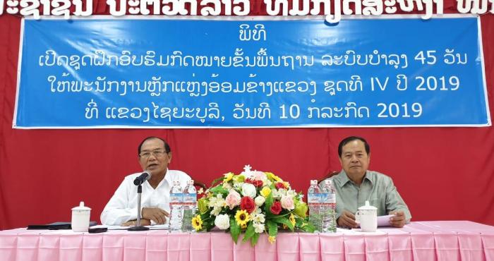 ໃນພິທີທ່ານ ອາເມ ຊົງເຍ້ຍເລັ່ງ ກຳມະການພັກແຂວງ, ຫົວໜ້າພະແນກຍຸຕິທໍາແຂວງ ໄຊຍະບູລີໄດ້ຂຶ້ນຜ່ານຂໍ້ຕົກລົງຂອງເຈົ້າແຂວງ ໄຊຍະບູລີ ວ່າດ້ວຍ ການອະນຸມັດເປີດການຮຽນ-ການສອນກົດໝາຍ 45 ວັນ ຊຸດທີ IV ໃຫ້ແກ່ພະນັກງານຫຼັກແຫຼ່ງຂອງບັນດາພະແນກການ, ອົງການ, ກົມກອງອ້ອມຂ້າງແຂວງ ໄຊຍະບູລີ, ຊຸດຝຶກອົບຮົມດັ່ງກ່າວ ເລີ່ມຮຽນຕັ້ງແຕ່ວັນທີ 11 ກໍລະກົດ ຫາ 11 ກັນຍາ 2019 ປະກອບມີ 32 ວິຊາຮຽນ, 22,5 ໜ່ວຍກິດ ຫຼື ເທົ່າກັບ 360 ຊົ່ວໂມງ ແລະ ມີຜູ້ເຂົ້າຮ່ວມຝຶກອົບຮົມທັງໝົດຈໍານວນ 45 ທ່ານ, ຍິງ 9 ທ່ານ.
